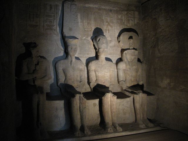 El Santuario con Amón, Ra, y Ramsés, en penumbra Ptah